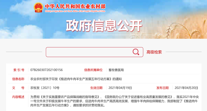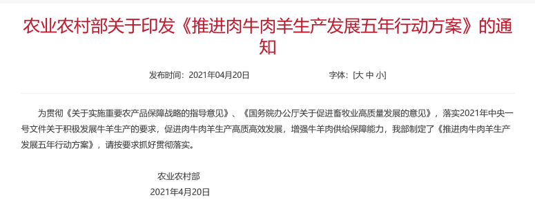 農業農村部關于印發《推進肉牛肉羊生產發展五年行動方案》的通知