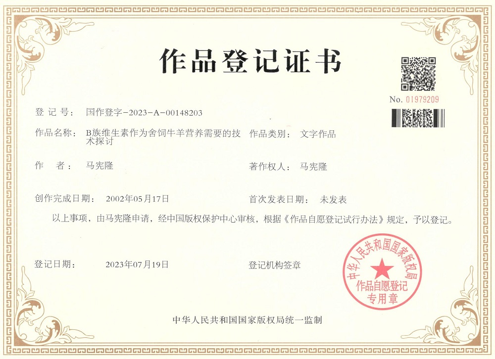 《精準(zhǔn)營(yíng)養(yǎng)健康助長(zhǎng)》登記證書(shū)