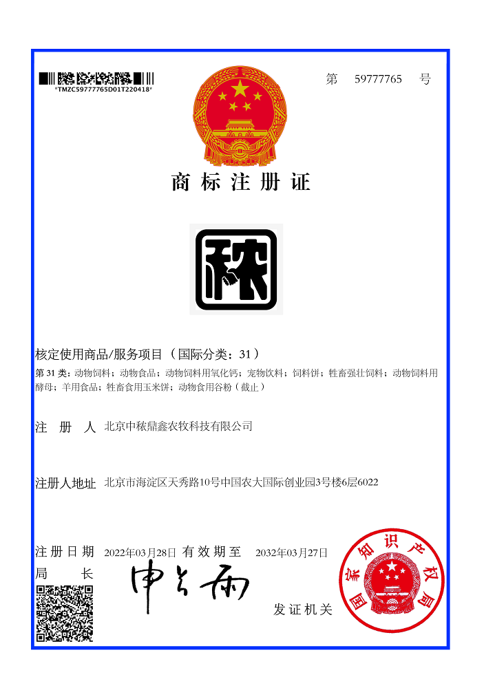 牛羊圖形商標注冊證書